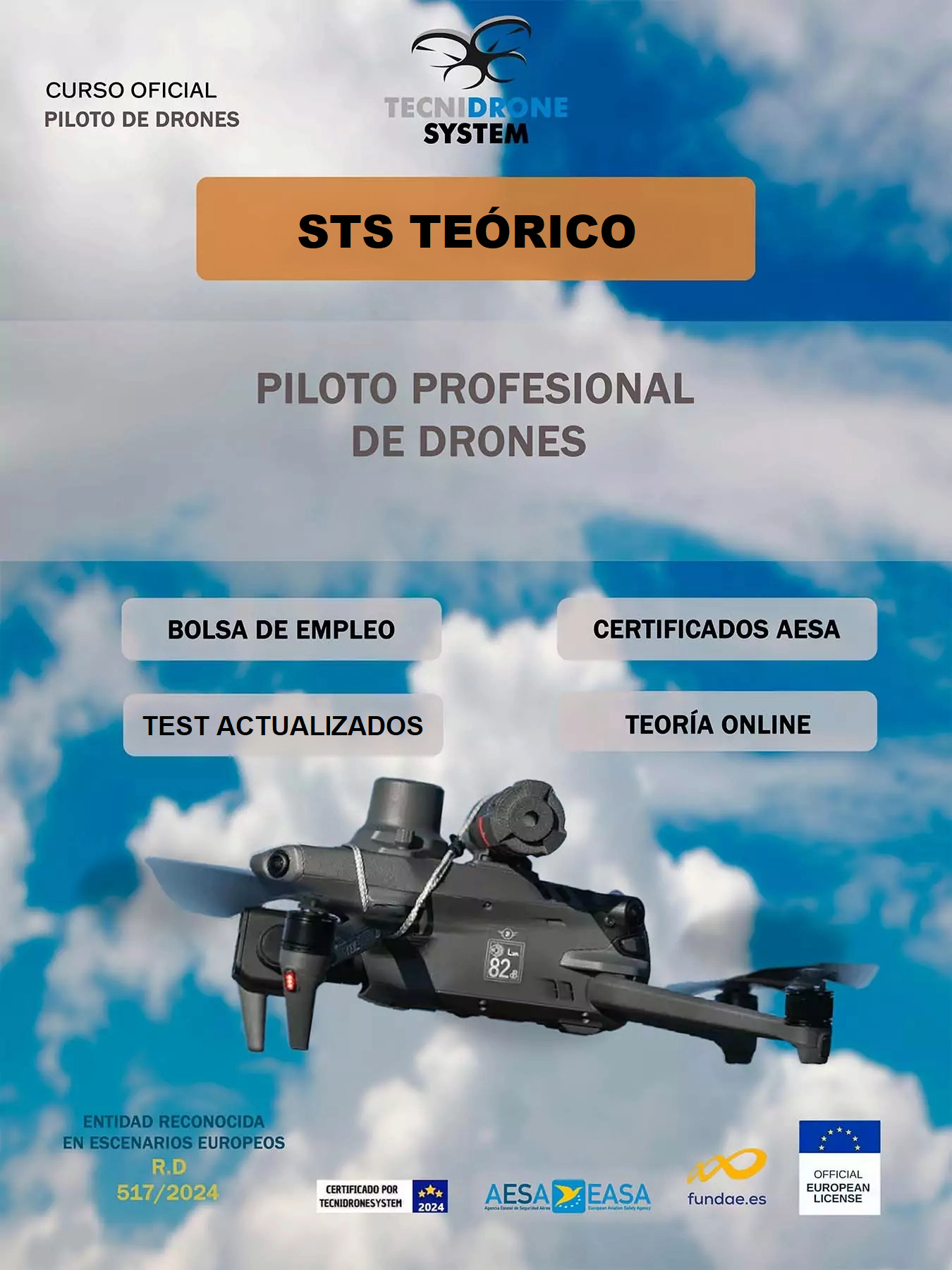 Fórmate con nosotros para conseguir el certificado oficial de Piloto Profesional de RPAS – categoría específica STS-01, reconocido por EASA (European Aviation Safety Agency) y AESA (Agencia Estatal de Seguridad Aérea). Somos un Centro Autorizado para la formación de pilotos profesionales de RPAs/Drones por la Agencia Estatal de Seguridad Aérea (AESA).